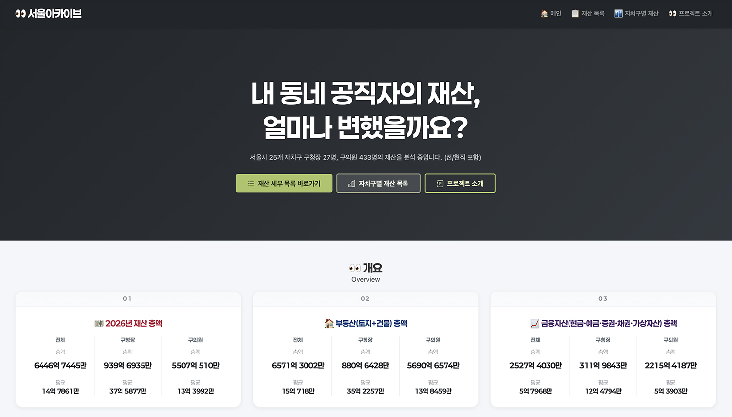 구정감시서울네트워크가 서울 25개 자치구 공직자 430여 명의 재산 데이터를 정밀 분석했습니다. 그 결과, 지난 한 해 동안 이들의 재산은 무려 440억 원이나 증가한 것으로 확인되었습니다. 💰🚩 "억" 소리 나는 그들만의 리그강남구의 압도적 1위: 강남구 공직자들의 재산 총액은 902억 원에 달하며, 1인당 평균 재산은 36.1억 원으로 서울 내 압도적 1위를 기록했습니다. 🏛️8배의 격차: 서울 구청장 1인 평균 재산은 약 37.6억 원. 이는 대한민국 가구 평균 순자산(약 4.7억 원)의 8배에 달하는 수치입니다. 구의원들 역시 평균 13.4억 원으로 일반 가구보다 3배나 많은 자산을 보유하고 있습니다. 📈최고 자산가: 조성명 강남구청장은 462억 원의 재산을 신고하며 전체 1위를 차지했습니..